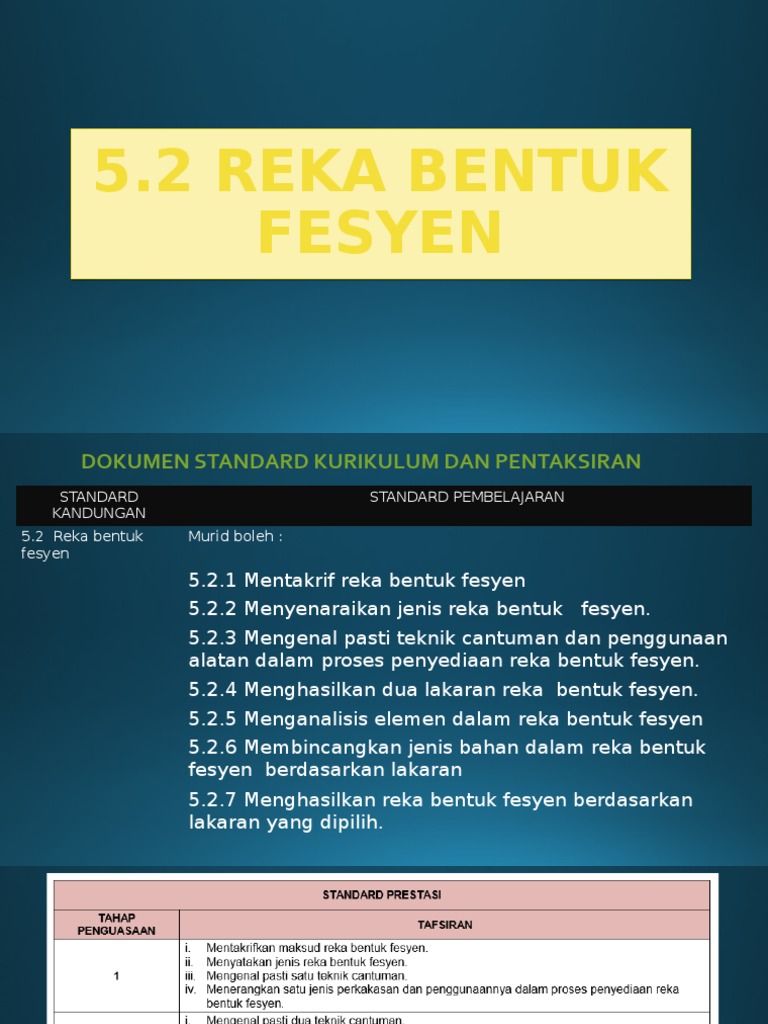 Kekuatan dan kelemahan projek e Penutup f Cadangan penambahbaikan g. 1st - 3rd grade. RBT TINGKATAN 1 Reka Bentuk Fesyen Video PDPC ini memfokuskan kepada STANDARD PEMBELAJARAN iaitu525 Menganalisis elemen dalam reka fesyenCredit to 1.
